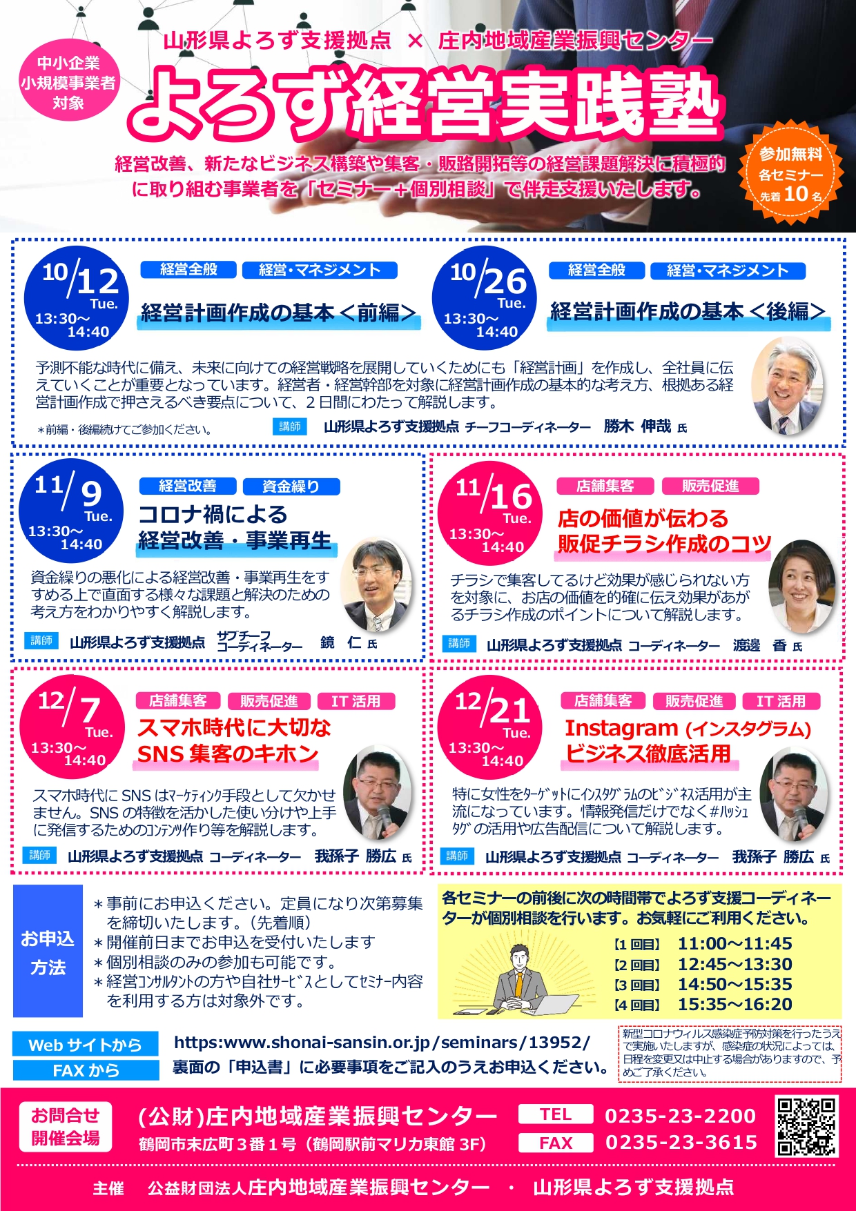 公益財団法人庄内地域産業振興センターと山形県よろず支援拠点の主催による「よろず経営実践塾」が開催されます。