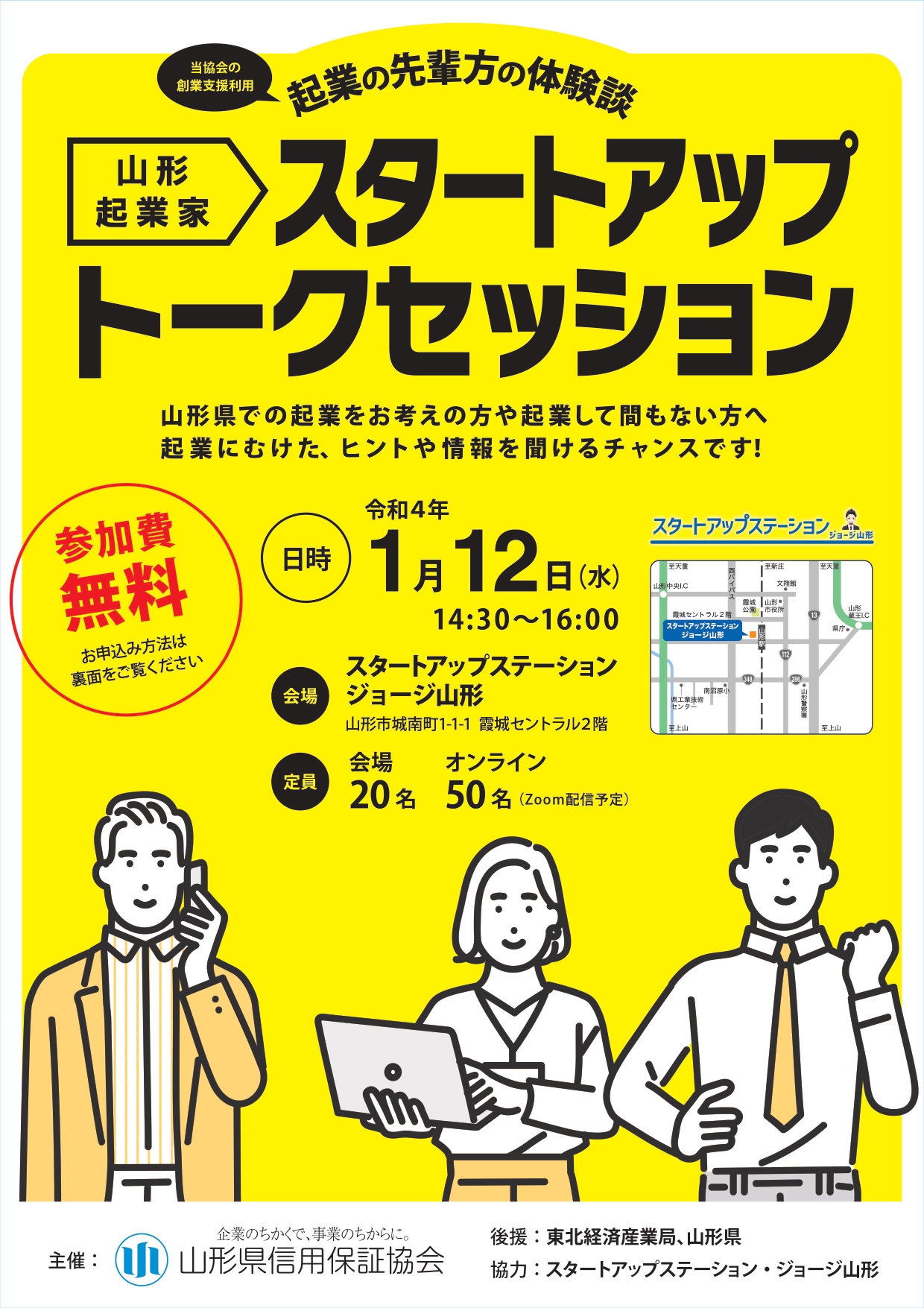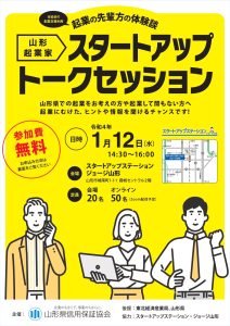 山形県信用保証協会主催による、企業の先輩方の体験談 山形起業家スタートアップトークセッションが開催されます。