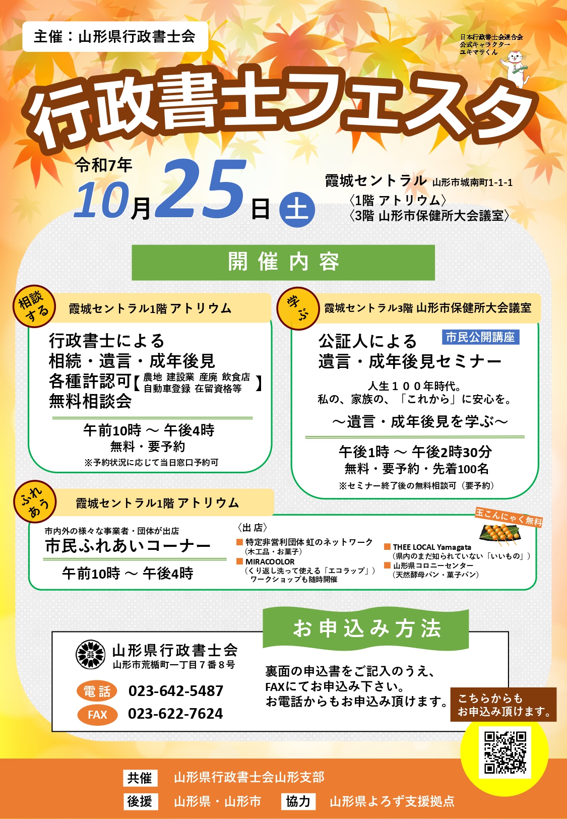 10月は行政書士制度広報月間であることから、10月25日(土)に行政書士フェスタを開催いたします。