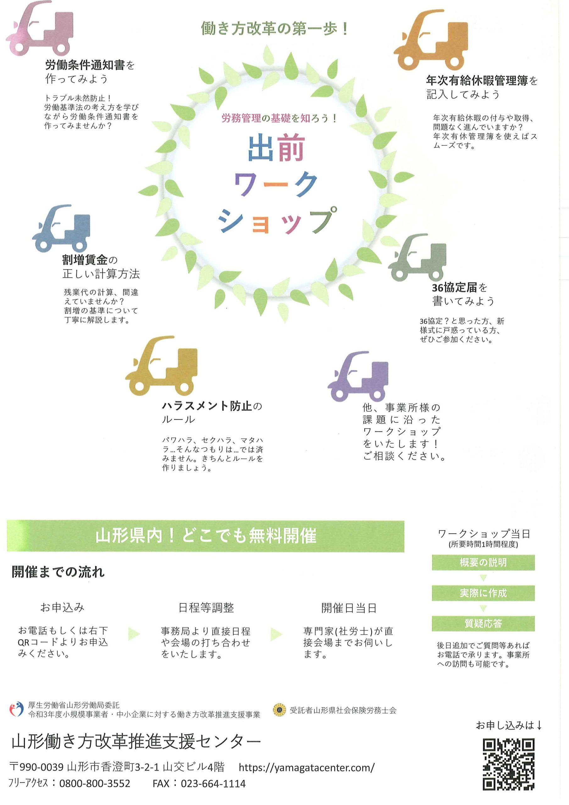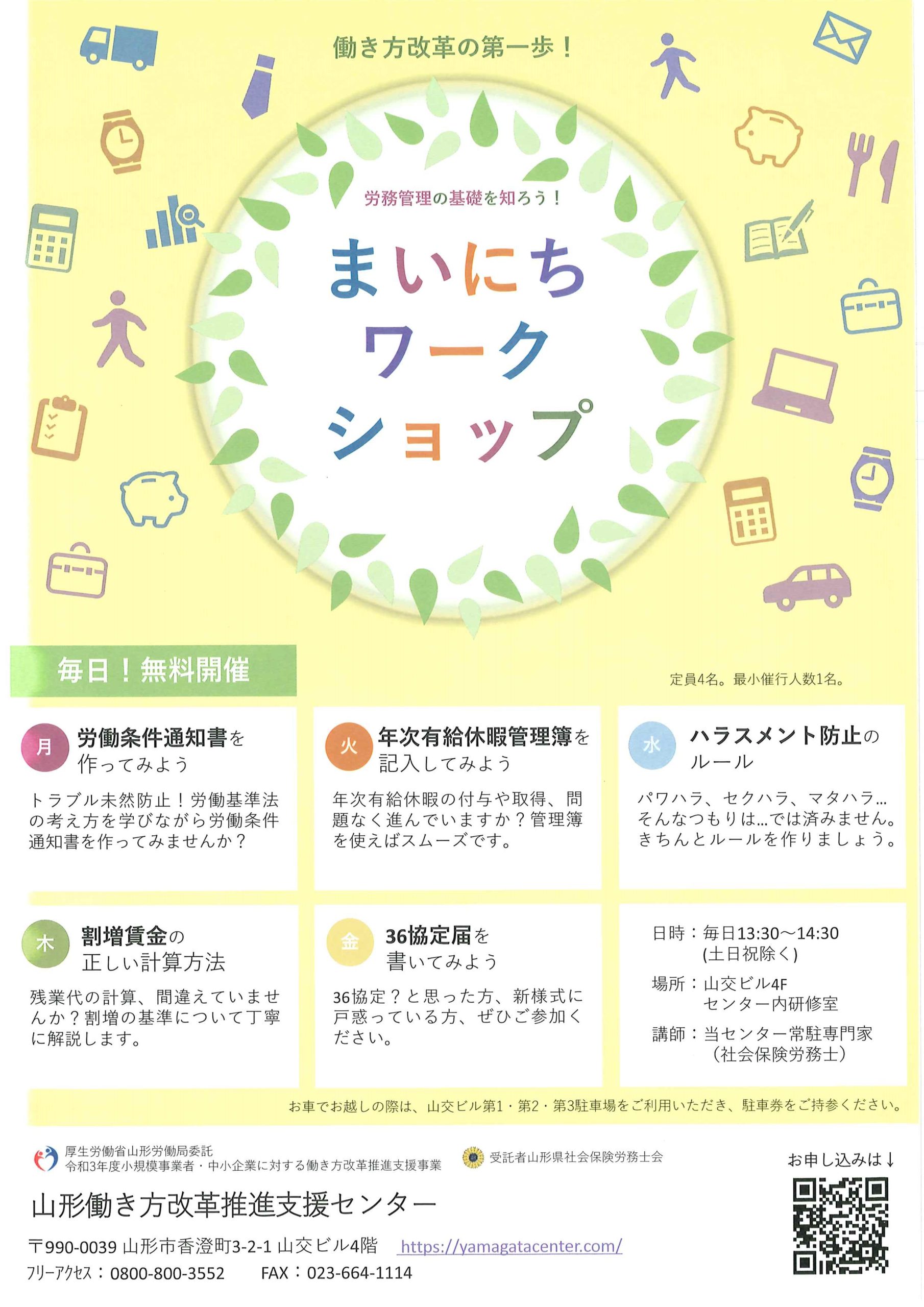 山形働き方改革推進支援センター主催のまいにちワークショップが開催されております。