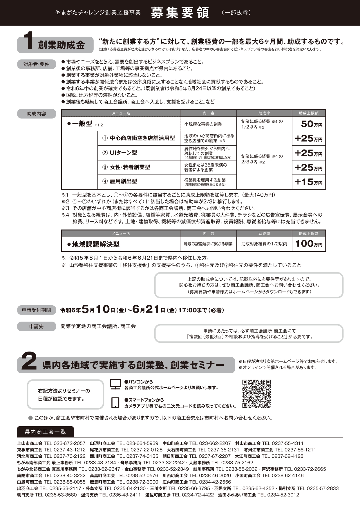 このほか、商工会や市町村で開催される場合がありますので、各商工会・商工会議所または市町村へお問い合わせください。