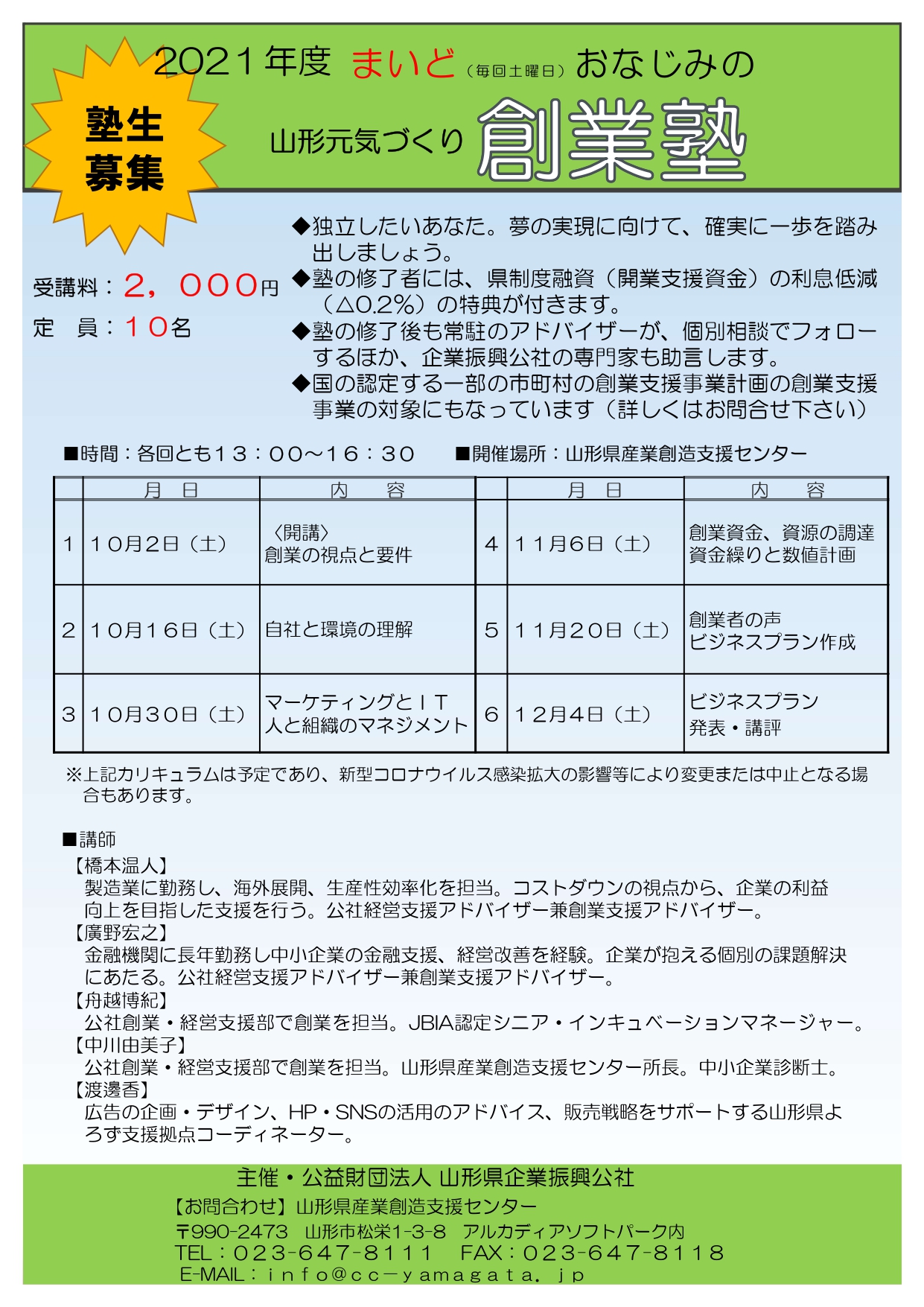 今年度も公益財団法人 山形県企業振興公社主催の「創業塾」が開催されます!