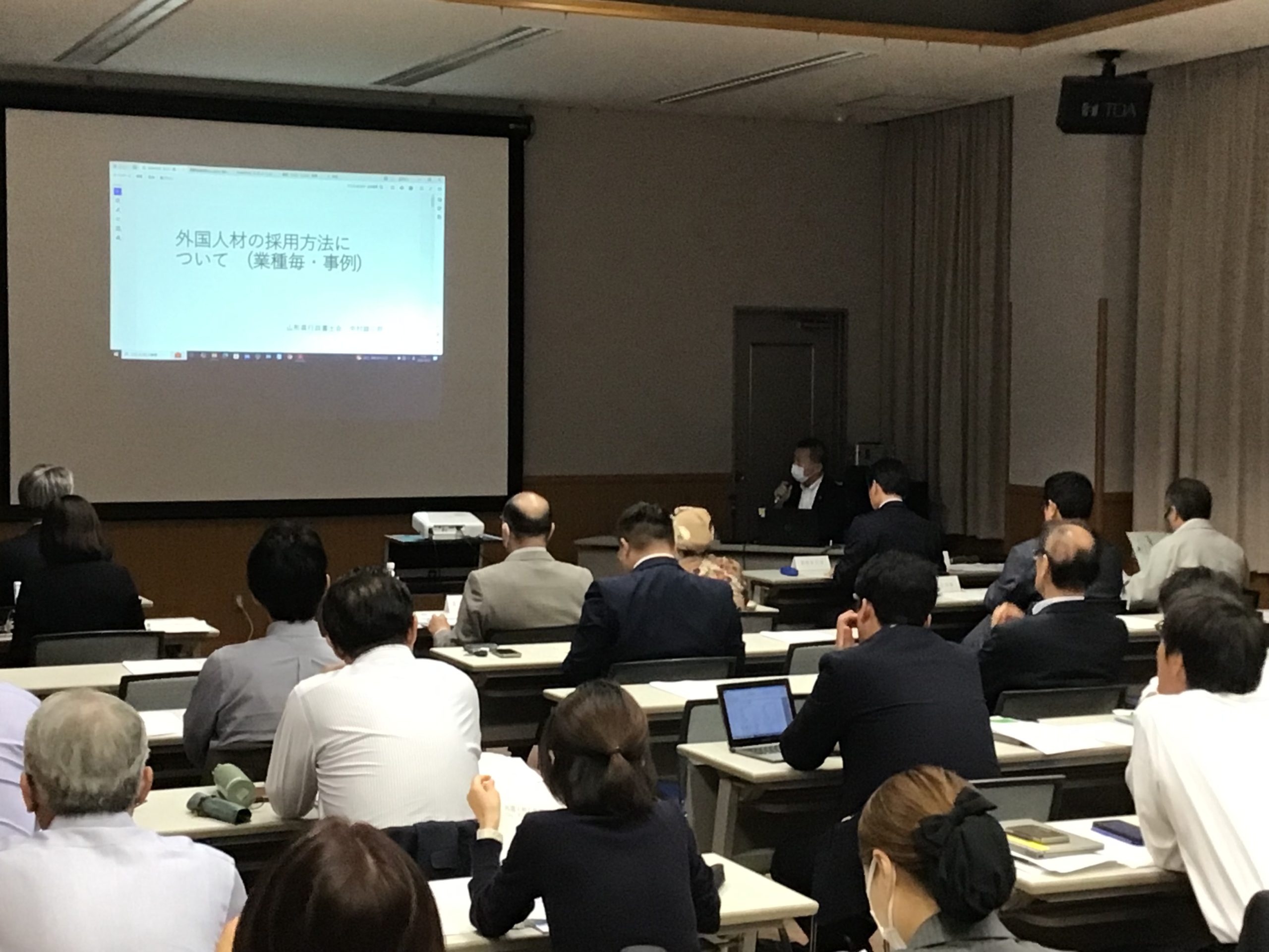 当拠点と山形県行政書士会、山形県と連携した「外国人材受入れ情報提供セミナー」を10月15日(火)に開催しました。日々の相談でも外国人材の話題は多く、申込み開始と同時に定員50名に達し当日は70名の参加者と盛況でした。