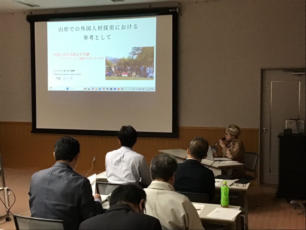 セミナーでは県「山形県の外国人材確保施策」、行政書士会「業種別採用方法・事例」、そして「相談・紹介・アフターフォロー」まで行っている県内3事業者にも情報提供を頂きました。具体的な進め方が分かった、県内事業者に相談できるなら心強い、かなり満足できる内容だったなど中小企業庁の重点施策「人手不足、人材確保」へ対応したものですが、高い評価を頂いたと思います。