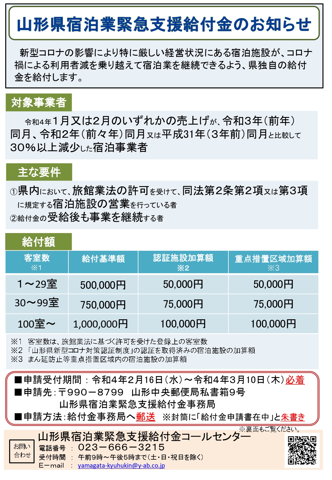 山形県宿泊業緊急支援給付金コールセンター