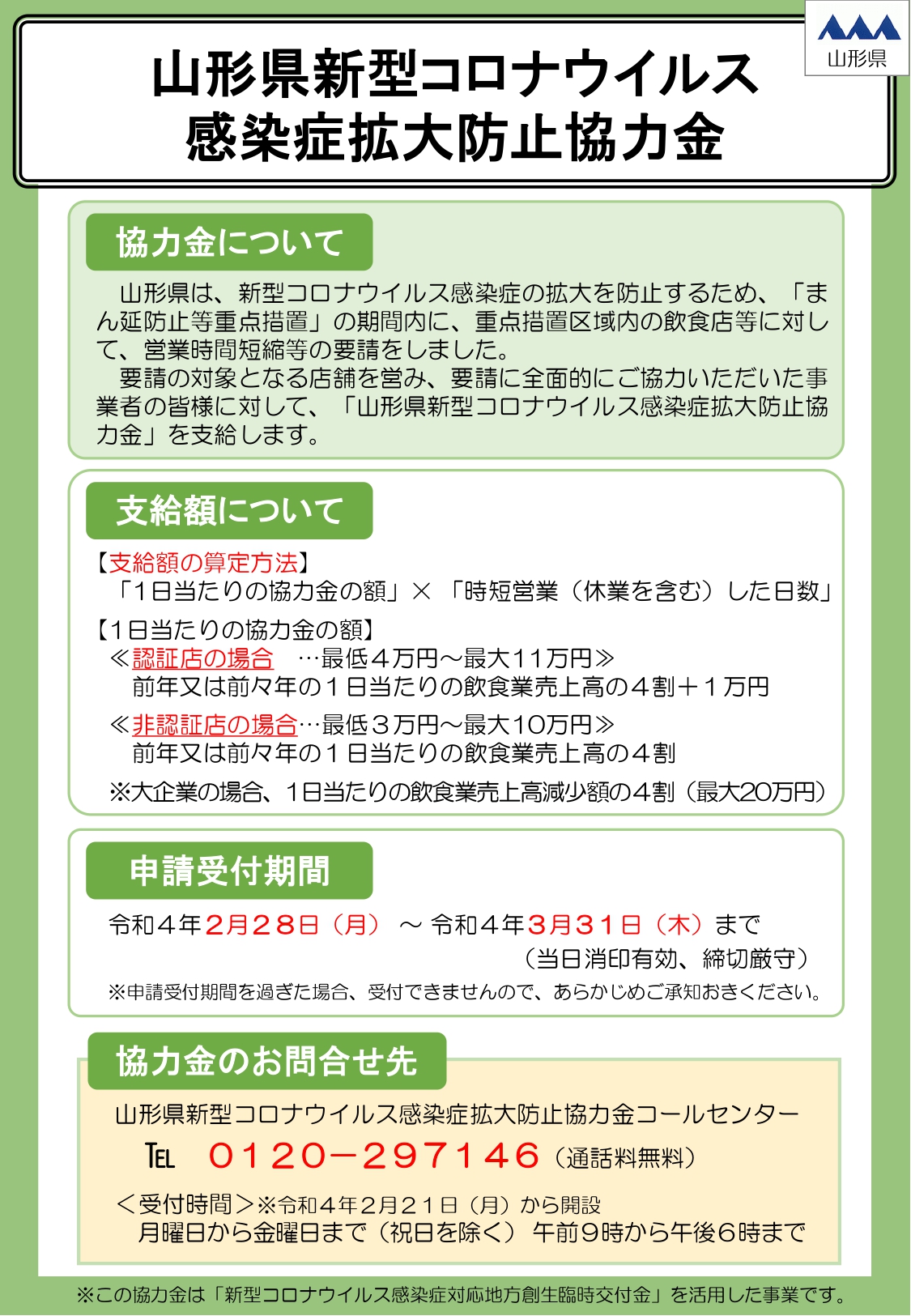 山形県新型コロナウイルス感染症拡大防止協力金事務局