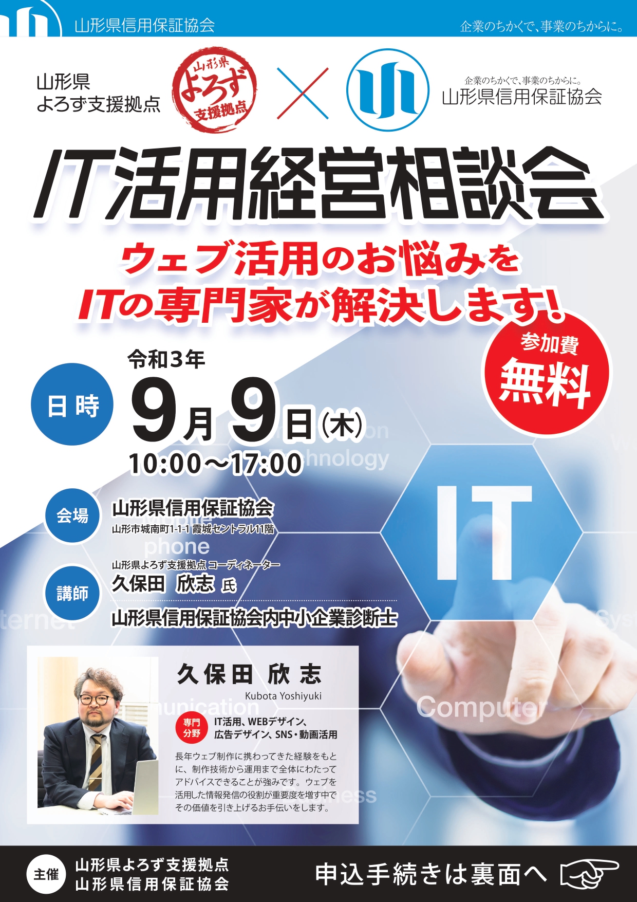 山形県信用保証協会と連携した「IT活用経営相談会」を開催します。