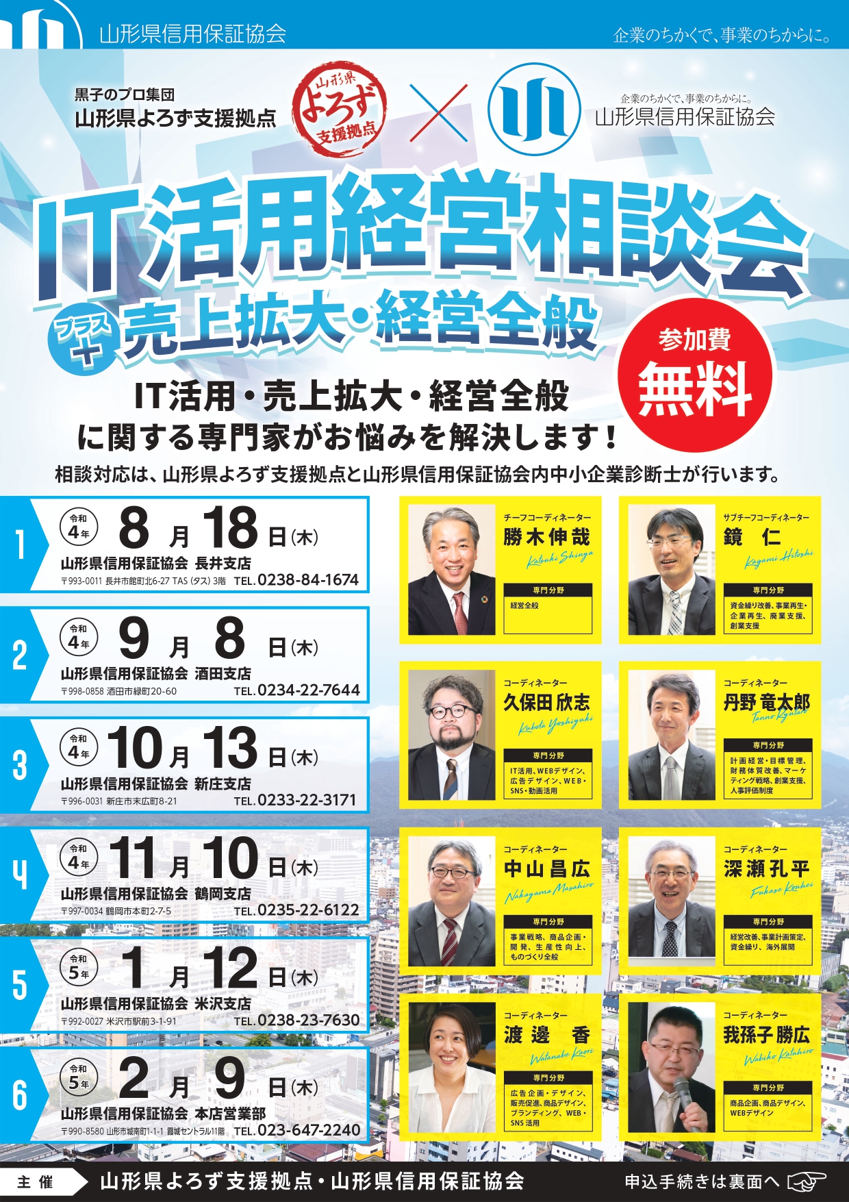 山形県信用保証協会と山形県よろず支援拠点が主催で開催する、IT活用経営相談会が開催されます。今回は売上拡大及び経営全般のご相談も可能です。