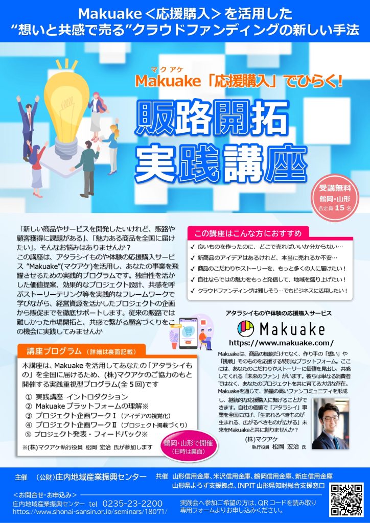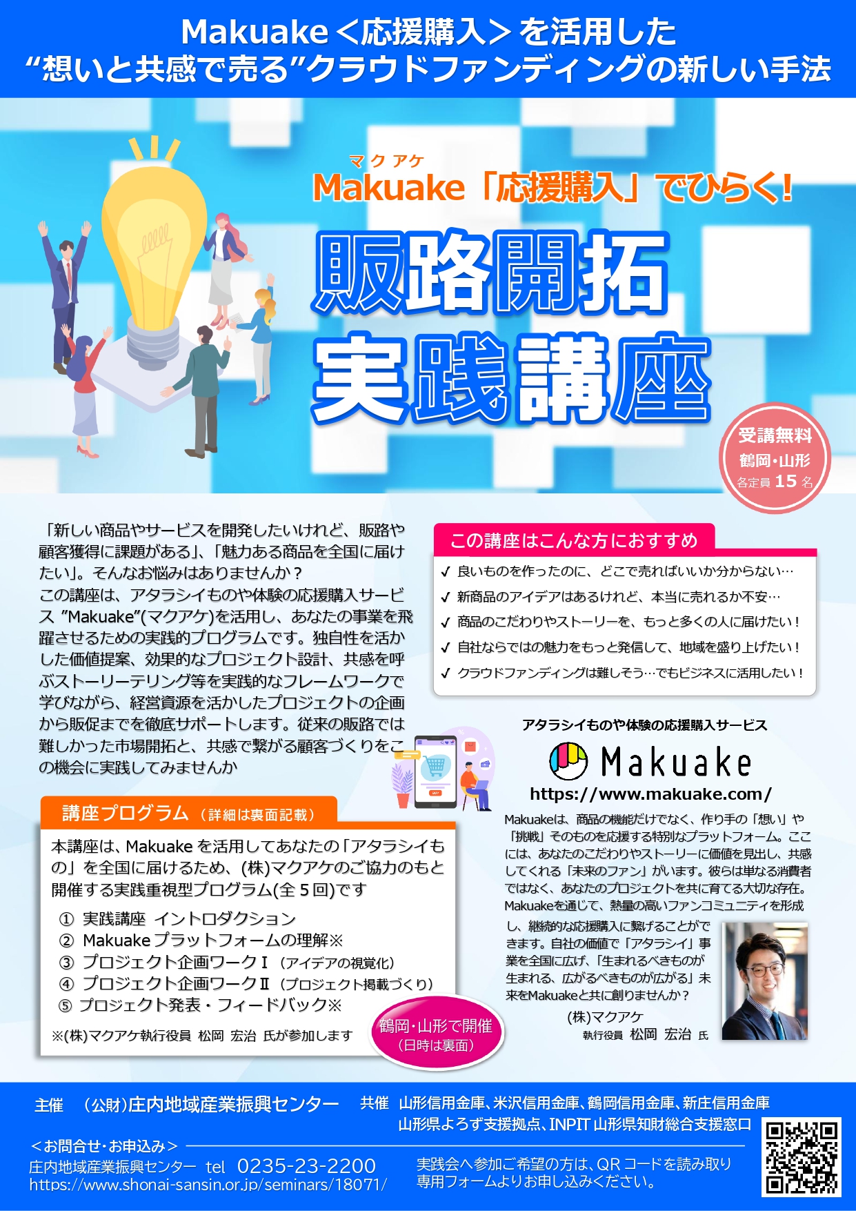 この講座は、アタラシイものや体験の応援購入サービス“Makuake”(マクアケ)を活用し、あなたの事業を飛躍させるための実践的プログラムです。